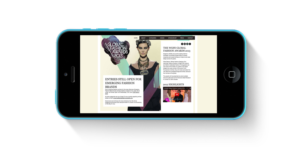 Crafting the new WGSN branding. This included taking a design in progress and finalising. I worked on the monthly newsletter and on the Global Fashion Awards website design.
